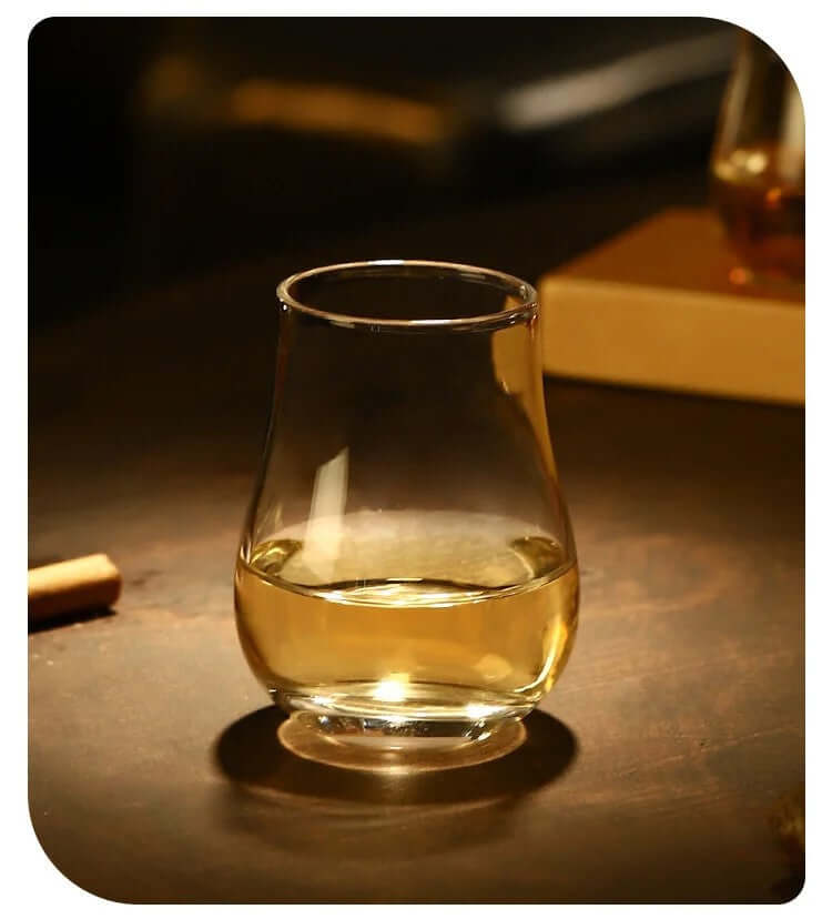 Specialized Tasting Glasses: Immerse yourself in the rich aromas and flavours of your favourite Scotch whiskies with our specialized tasting glasses. Their unique shape is designed to concentrate and elevate the sensory experience, allowing you to fully appreciate the nuances of each pour.