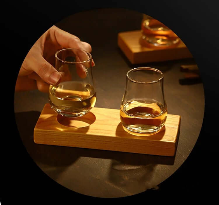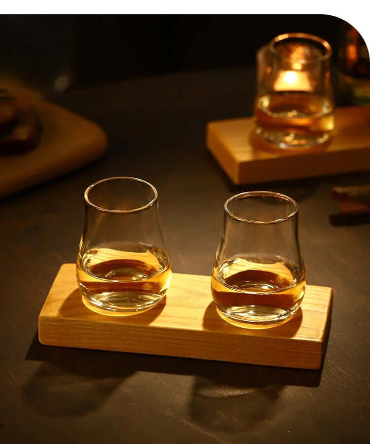 Ideal Set for Tasting Sessions: Elevate your Scotch tasting sessions with a purposefully curated set that emphasizes both style and functionality. The glasses and wooden pallet are not only tools for appreciation but also make a visual statement, turning your tasting rituals into a distinguished affair.