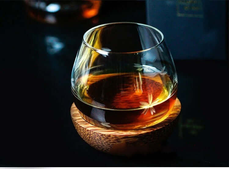 Matching Wooden Pallet: Each SLOW-ROLL Glass comes accompanied by a carefully crafted Matching Wooden Pallet. This wooden accessory not only serves as a functional coaster but also complements the glass's aesthetic, providing a stylish and cohesive presentation for your whisky-drinking rituals.